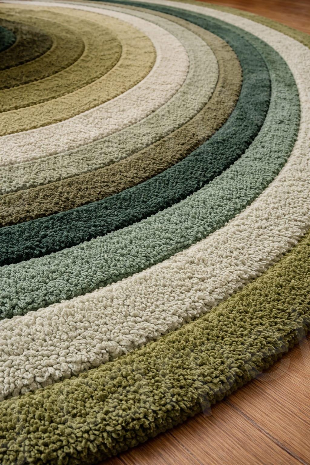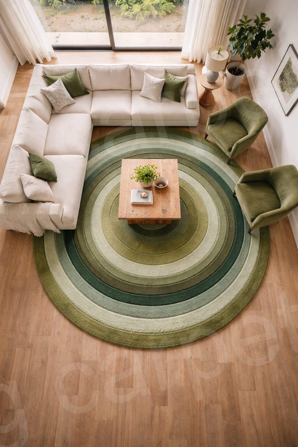 Bring calm, balance, and natural beauty into your home with this elegant round green area rug. Designed with soft layered circular rings in soothing shades of olive, sage, and forest green, this rug creates a peaceful and modern atmosphere in any space.