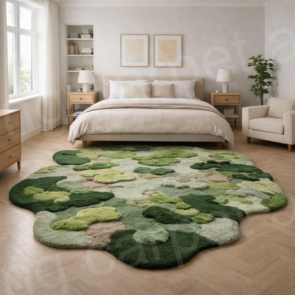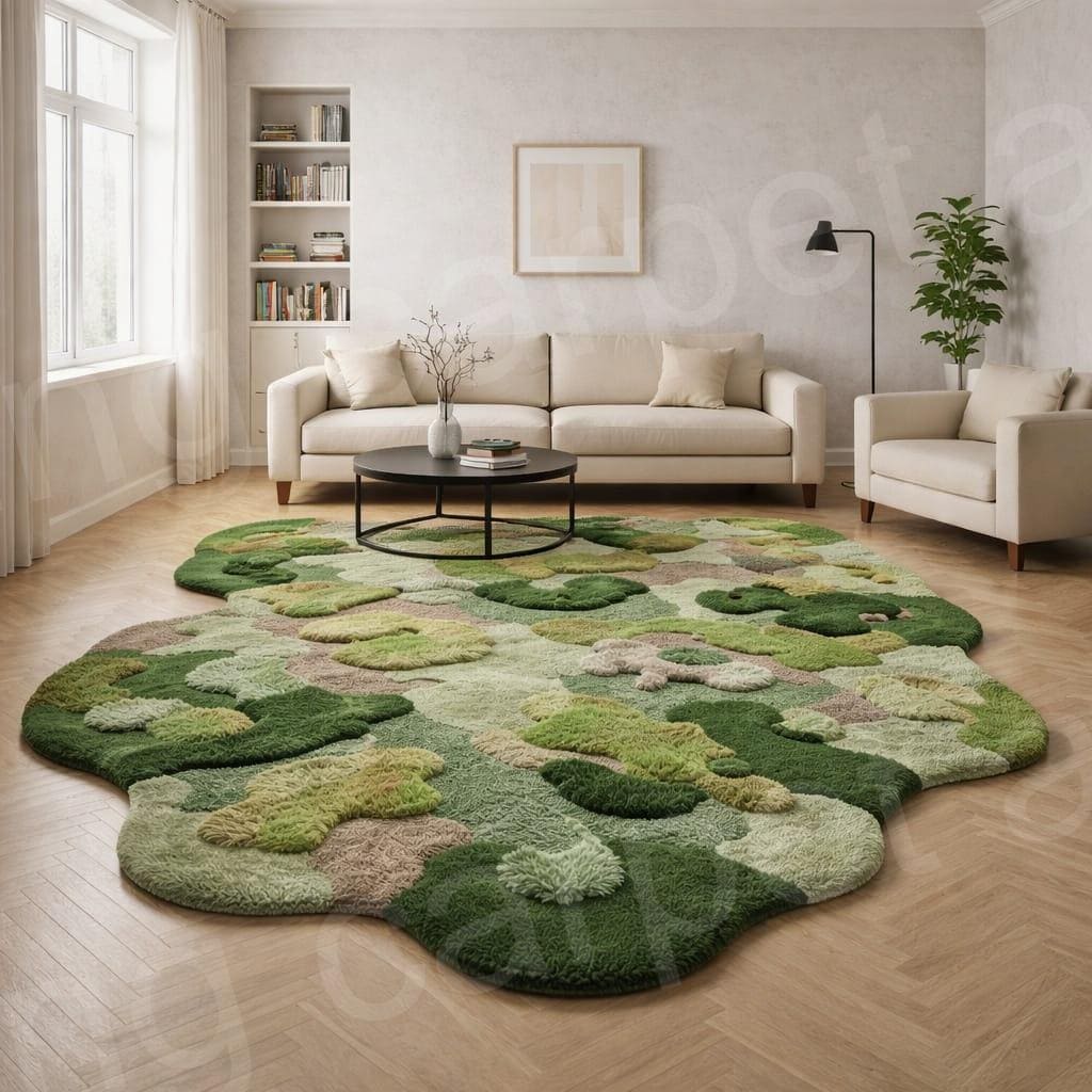 Handmade Moss Tufted Rug, Organic Shape Botanical Area Carpet