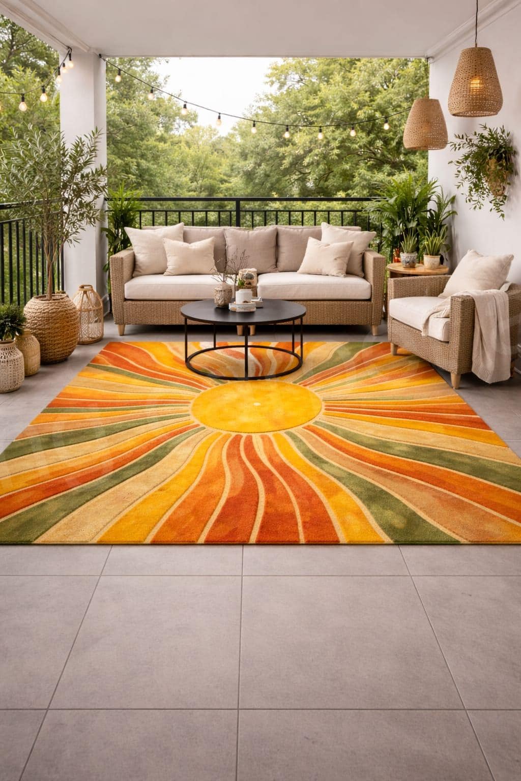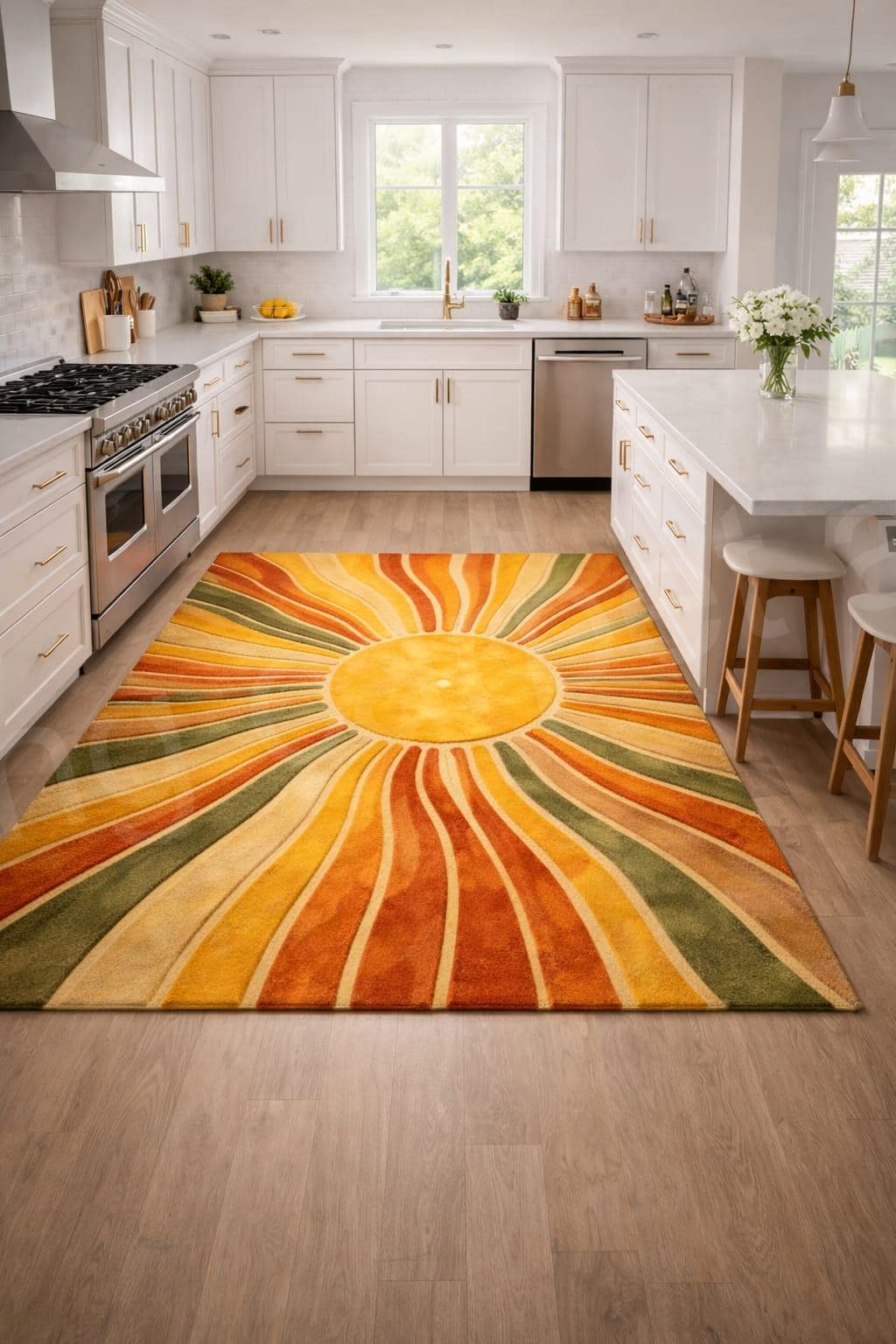 Handmade Sunburst Tufted Area Rug – Abstract Orange Yellow Green Living Room Decor