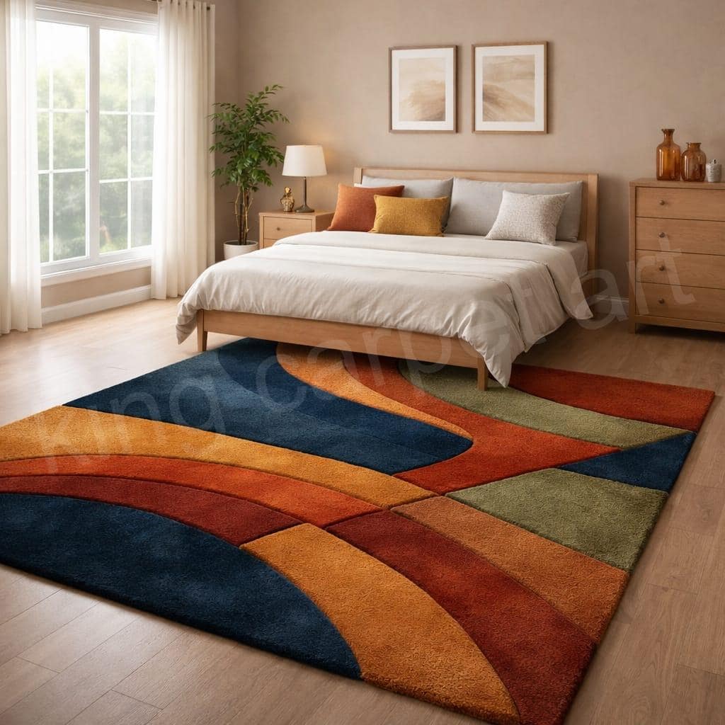 Hand-Tufted Abstract Curved Area Rug – Colorful Mid-Century Modern Home Decor