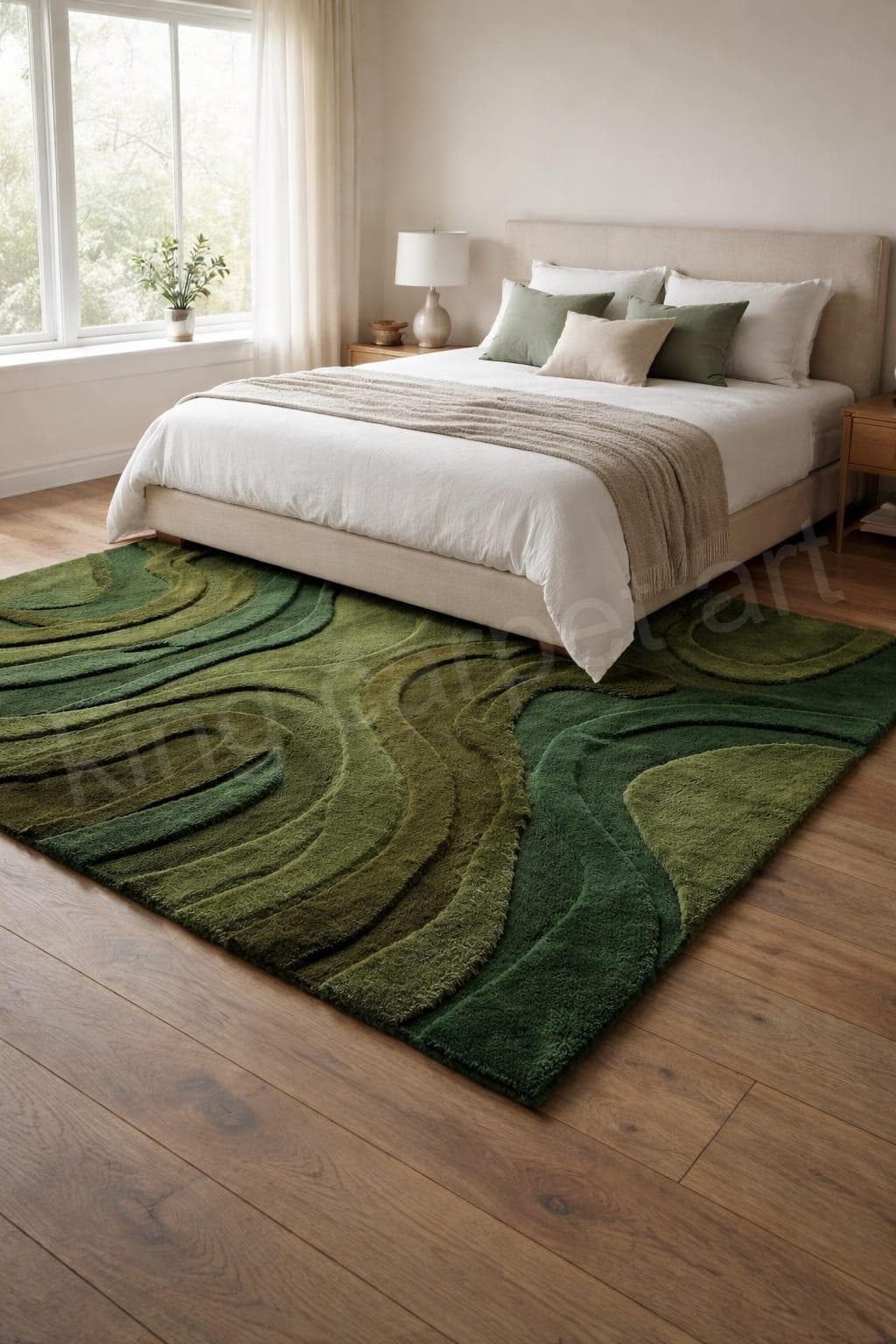 Bring the breathtaking artistry of nature into your home with our Verdant 3D Topographical Wave Rug. This is more than a floor covering; it is a sensory experience designed for those who appreciate the intersection of high-end design and organic beauty. Inspired by the undulating contours of a lush forest landscape, this rug features a multi-tonal palette of deep emerald, forest green, and soft sage. The masterfully hand-carved, varying pile heights create a genuine 3D effect that shifts and flows with the light in your room.