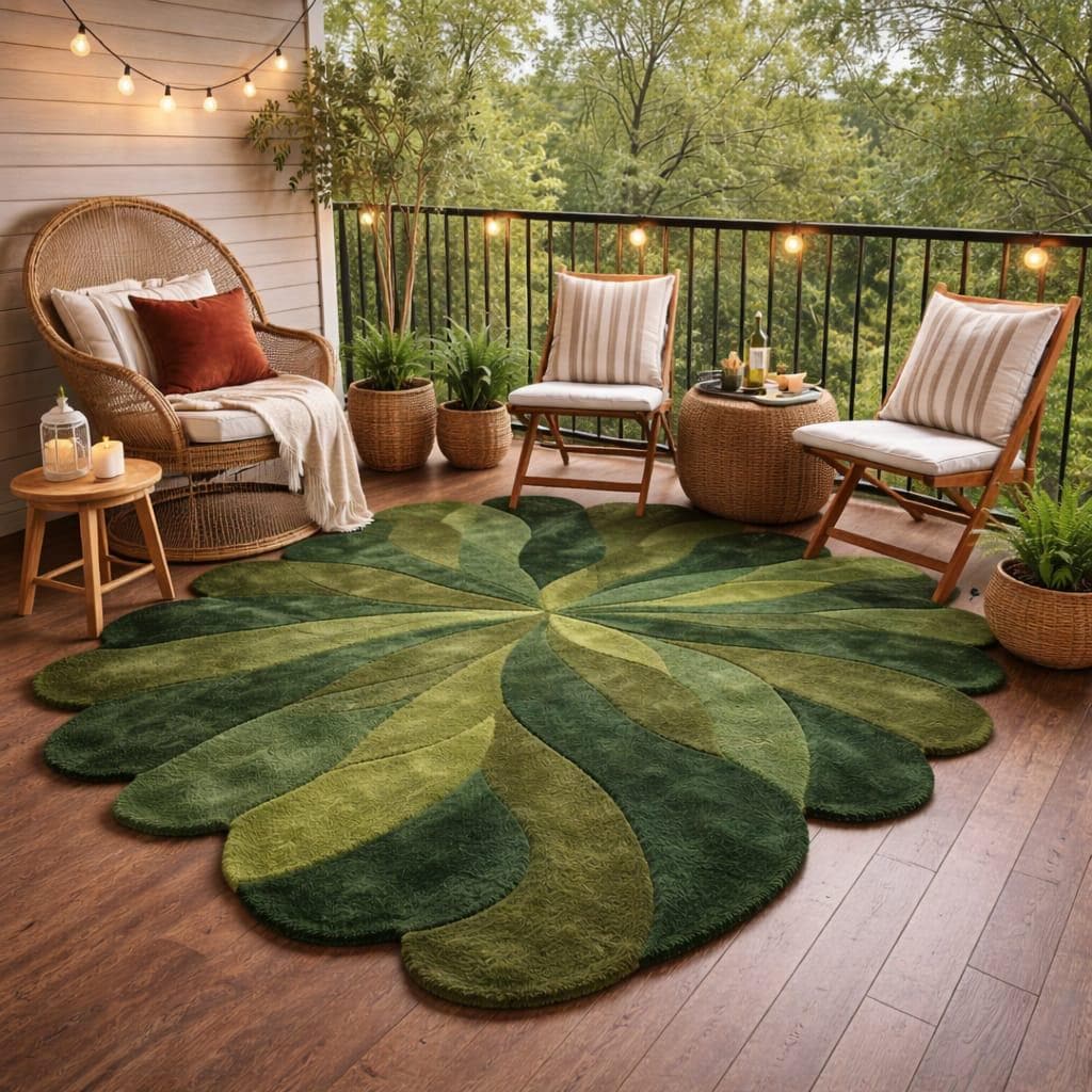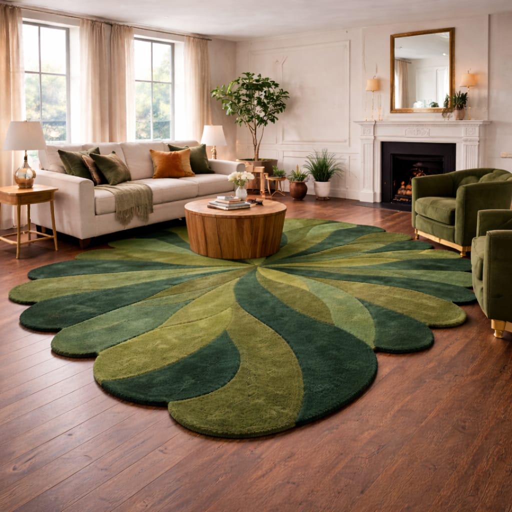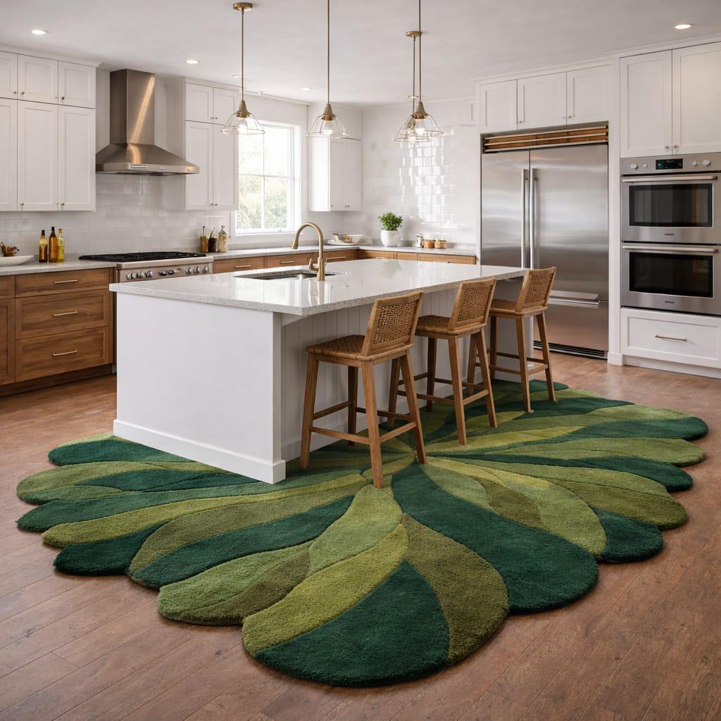 This modern botanical area rug is ideal for anyone looking to add a touch of nature, texture, and artistic design to their home. Its distinctive shape and rich green tones make it a standout piece that transforms any room into a warm and inviting space. 🌿