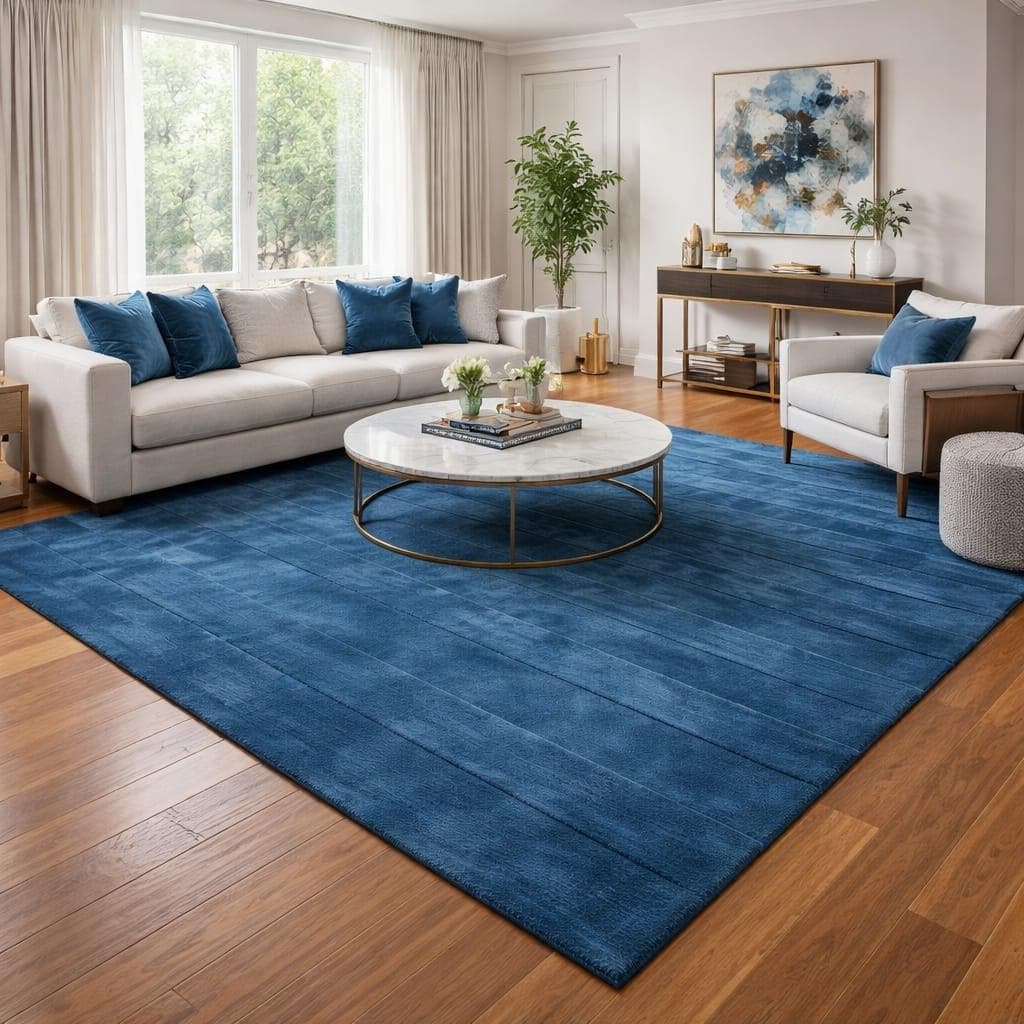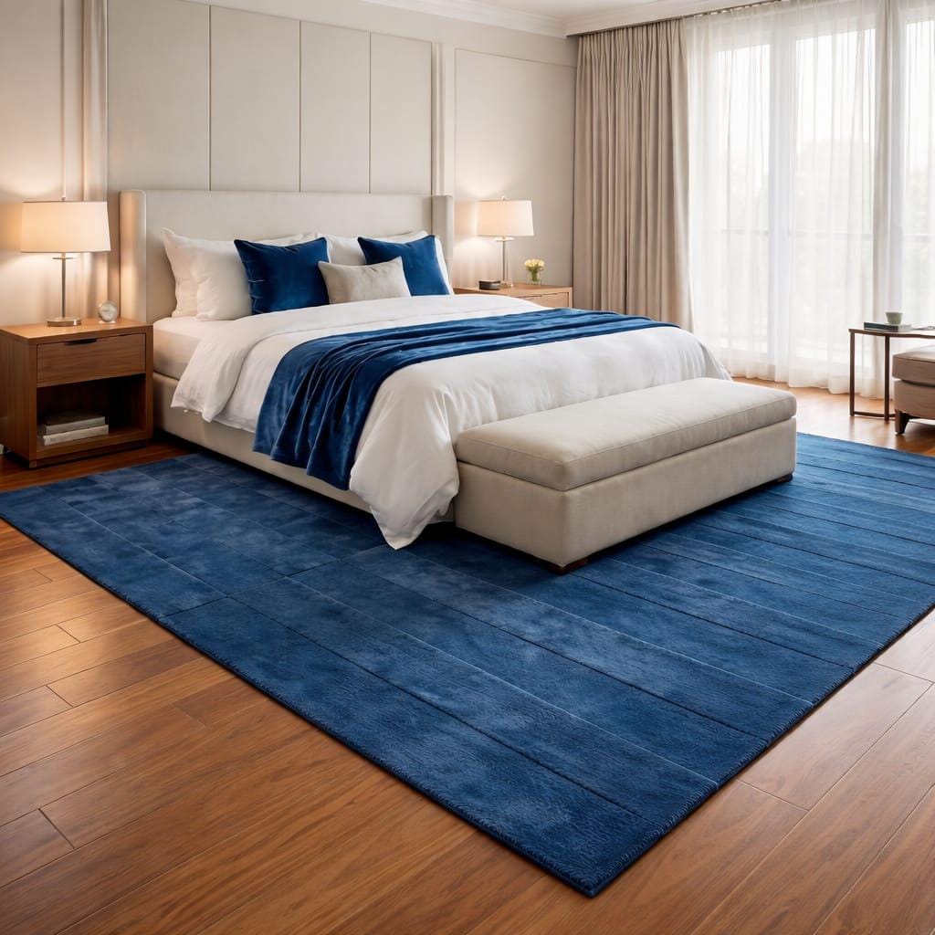 Elevate your home with this stunning navy blue area rug, designed to bring warmth, elegance, and modern simplicity to any space. Featuring a rich deep blue tone and a sleek solid design, this rug blends effortlessly into contemporary, minimalist, and transitional interiors. Its plush texture adds a cozy and inviting feel, making it perfect for living rooms, bedrooms, offices, or lounge spaces.