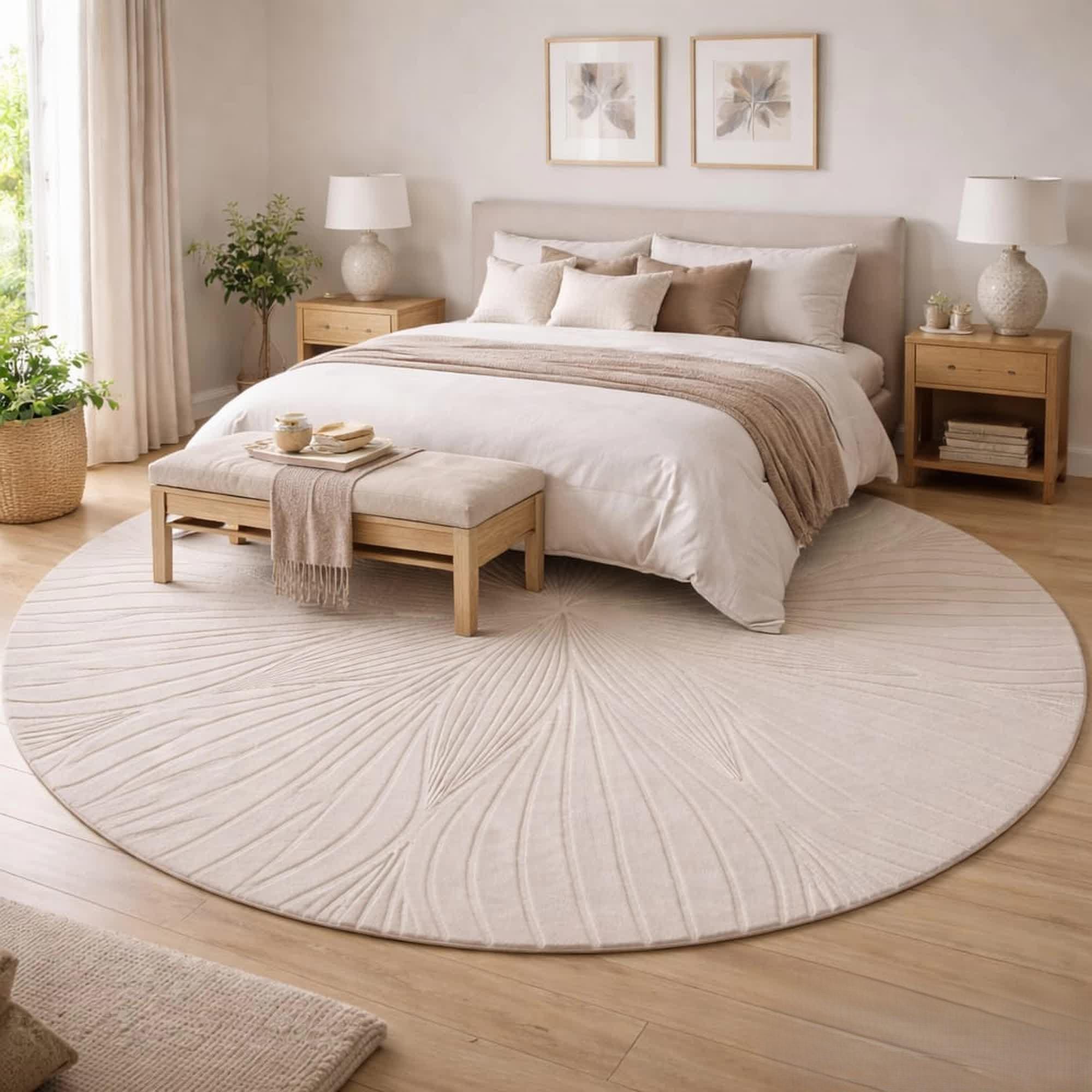 Add a soft, modern touch to your home with this aesthetic round statement rug that combines comfort, style, and timeless design.