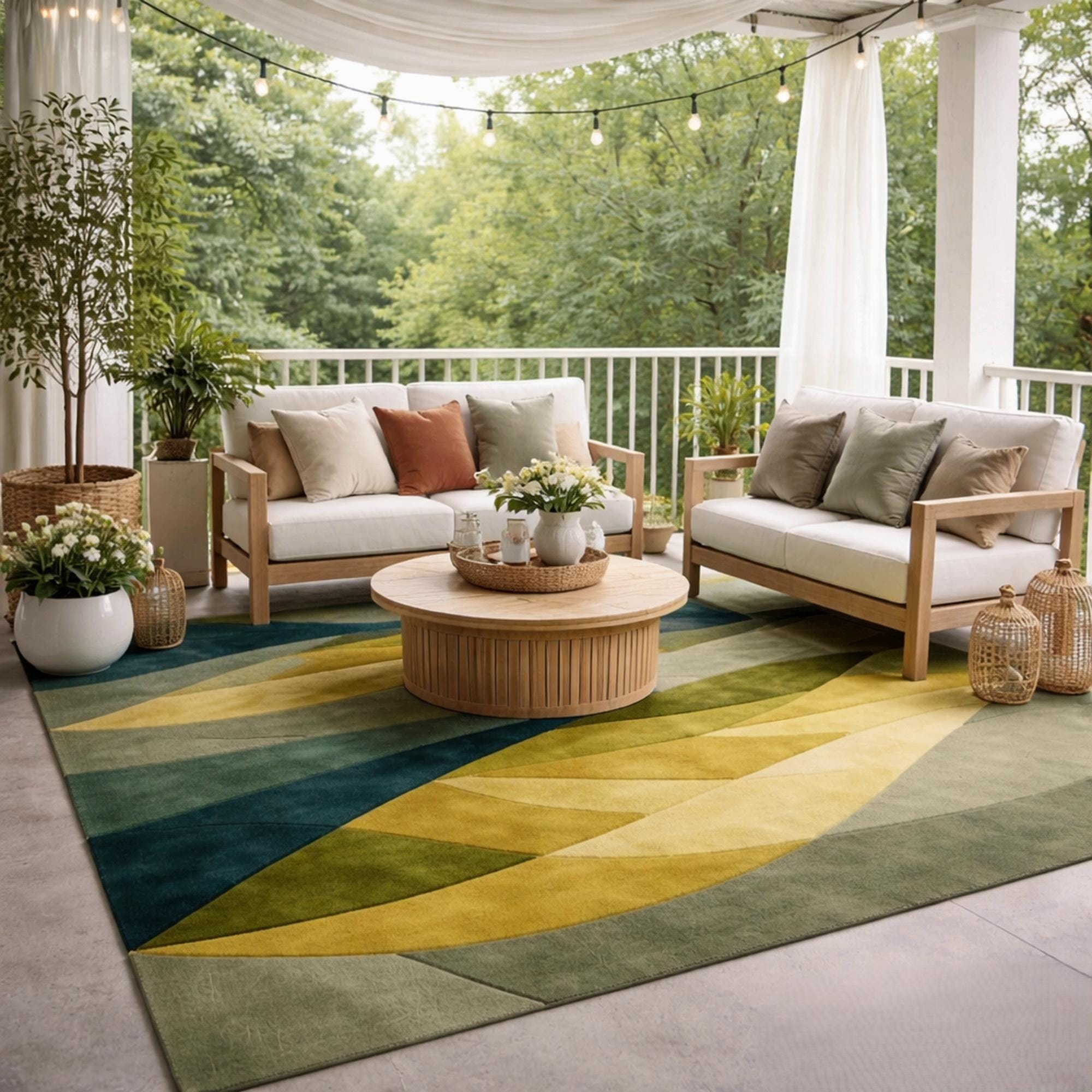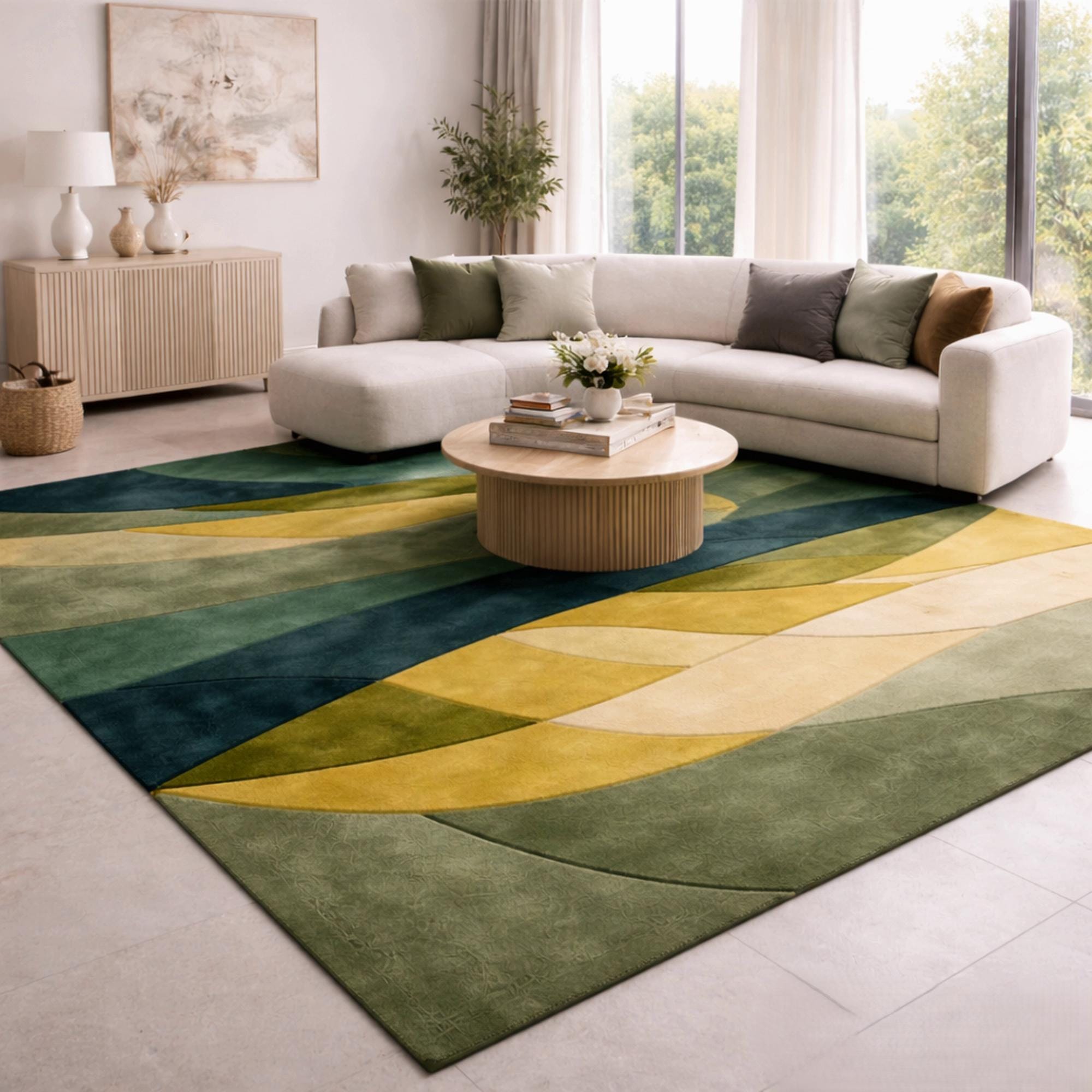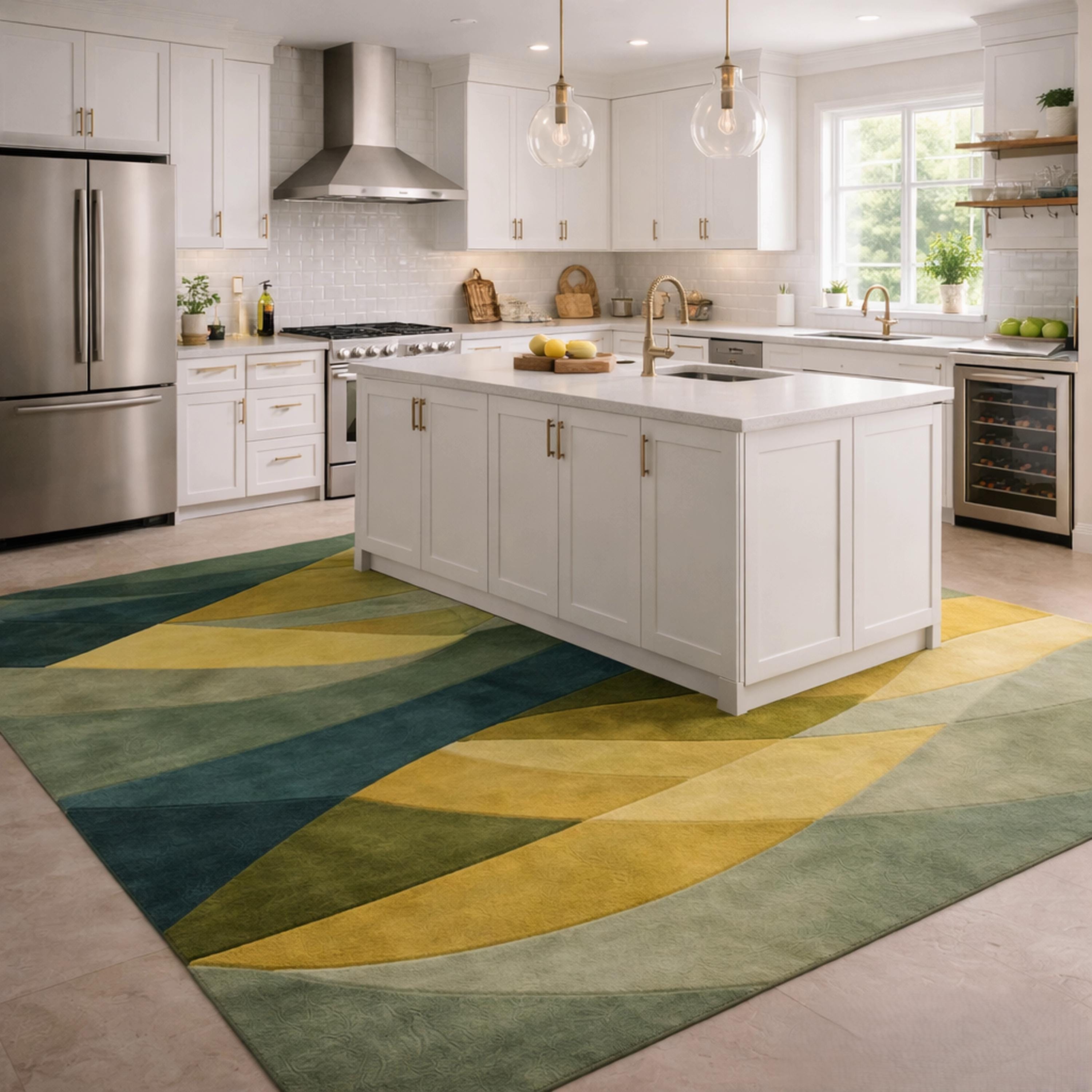 Green Yellow Abstract Geometric Area Rug, Mid Century Modern Statement Rug