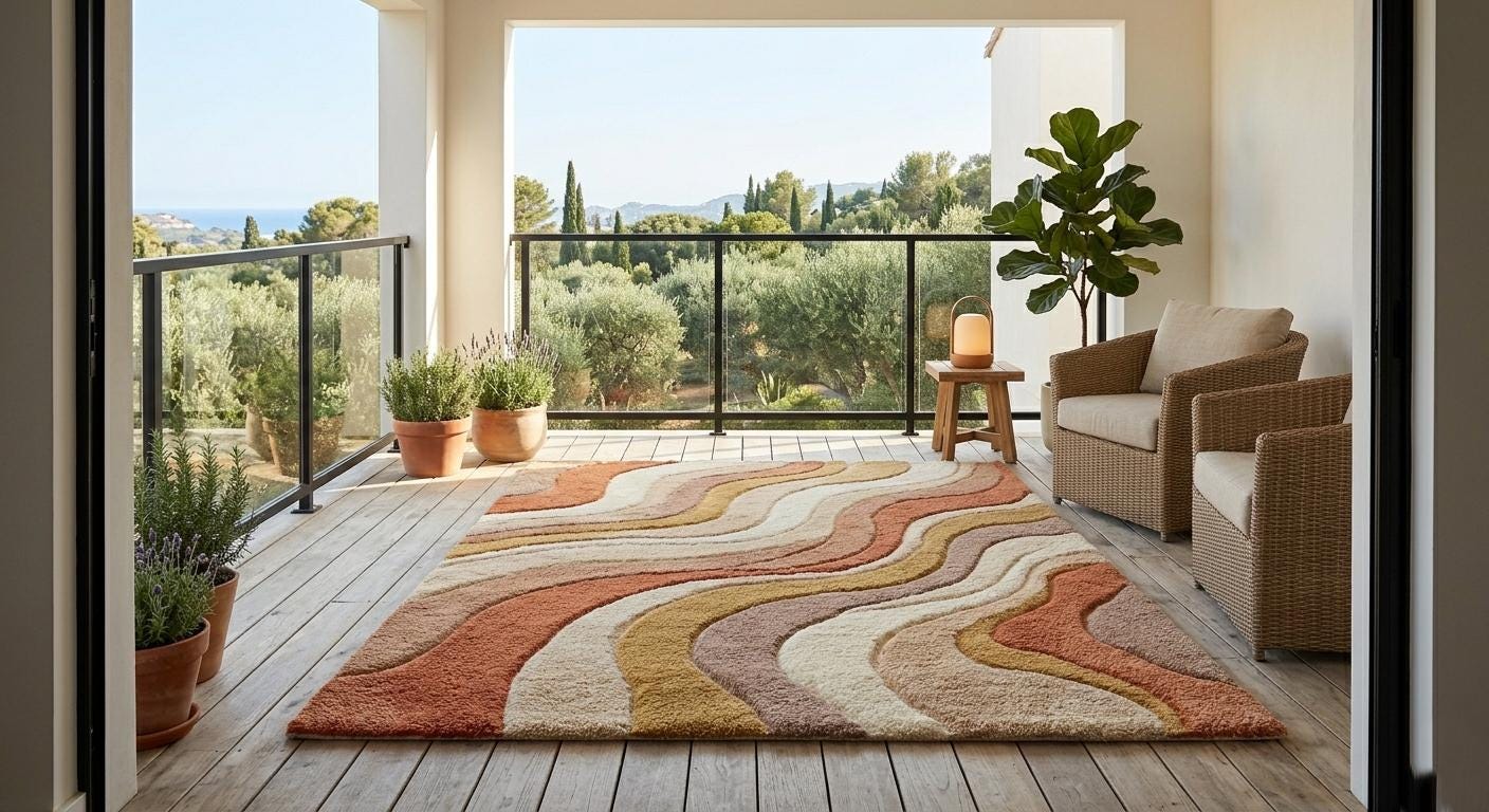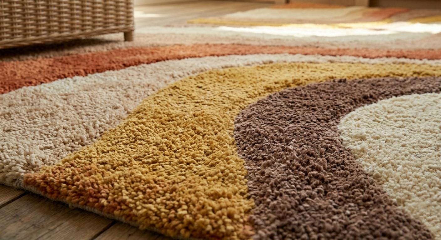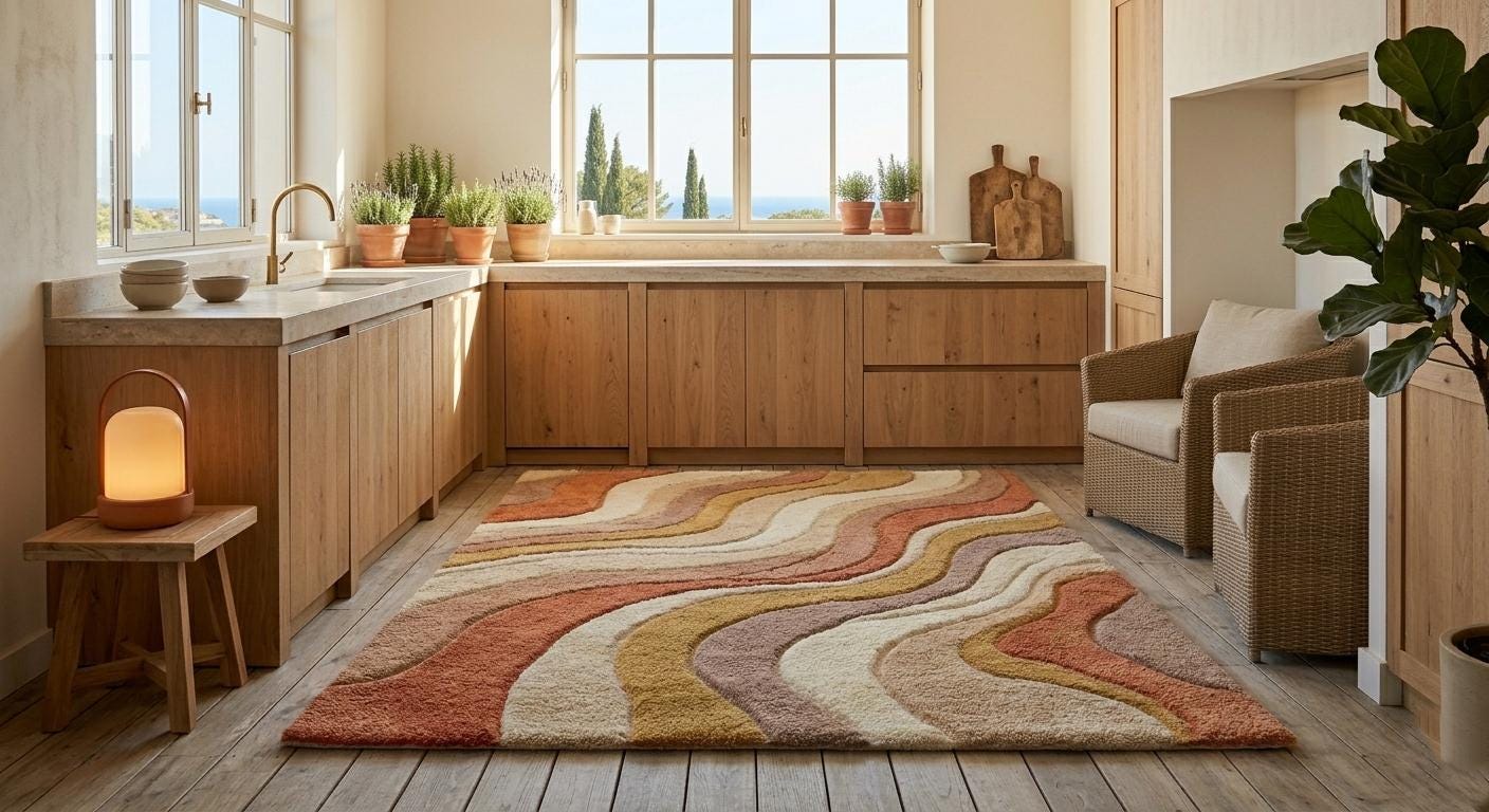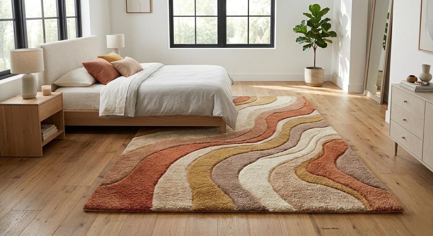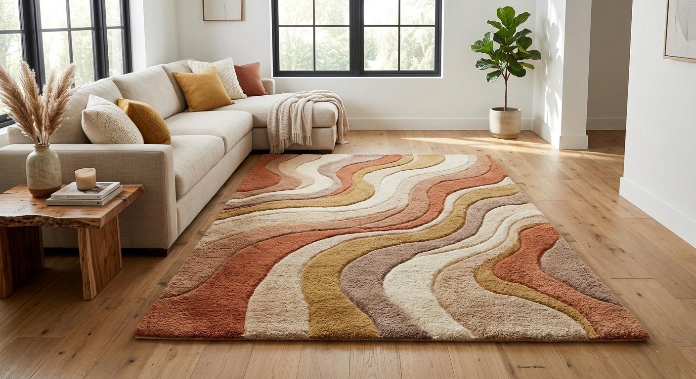 Hand-Tufted Abstract Wavy Rug - Colorful Retro Boho Floor Covering - Living Room Bedroom Nursery Rug - Wool Mid-Century Modern Rug